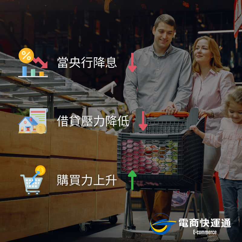 降息對消費需求的影響:當利率下降,消費者借貸成本降低,讓房貸、車貸等借貸壓力減輕,因而更有意願增加消費支出。對於電商平台來說,降息的效果可能會直接反映在消費者的購物行為上,尤其在美國市場,消費者有可能因額外可支配收入的增加而在網路購物上花費更多。